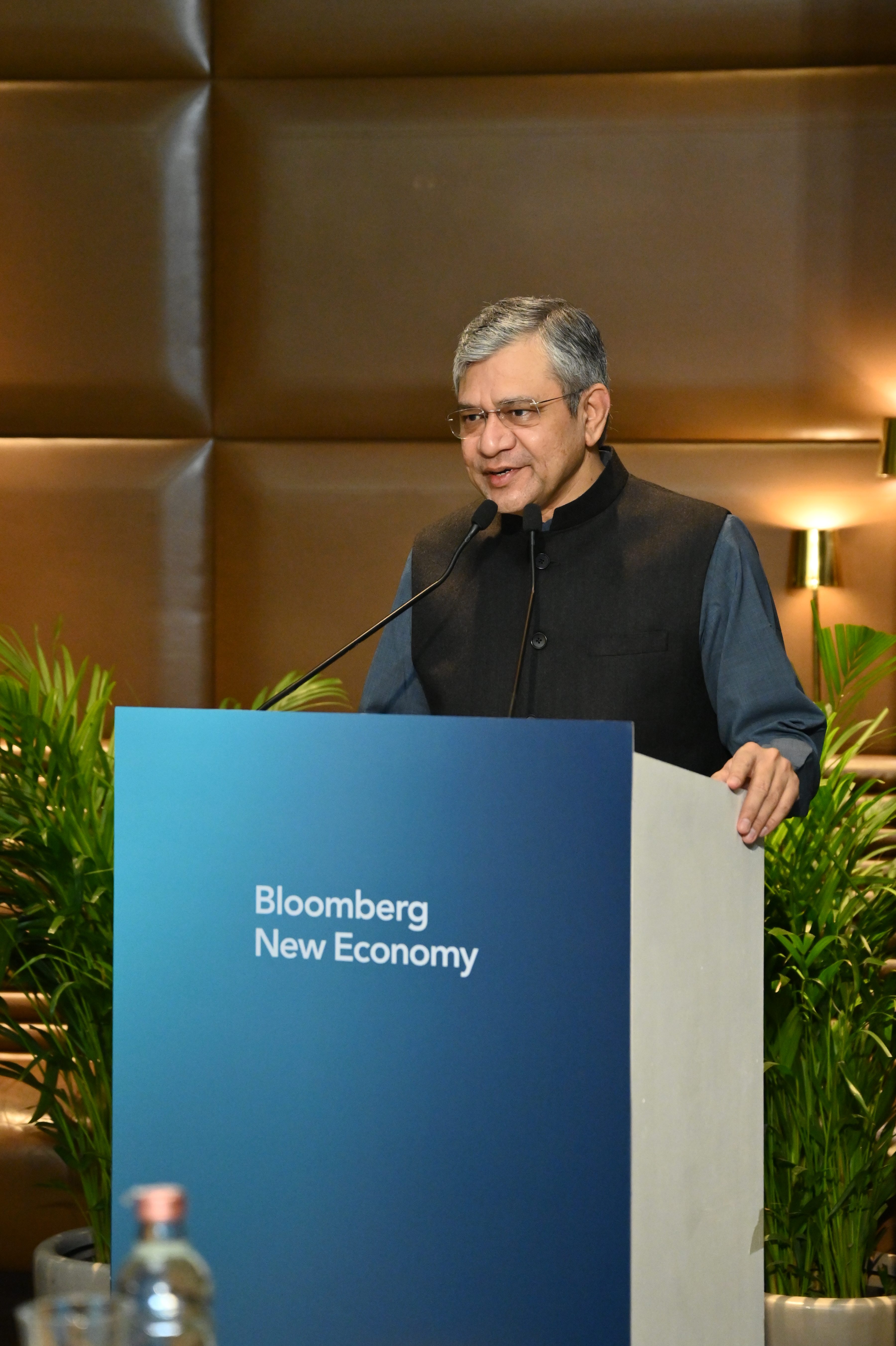 H.E. Ashwini Vaishnaw, India’s Minister for Railways, Information & Broadcasting and Electronics and Information Technology, shared opening remarks before handing the floor to Erik Schatzker, Editorial Director of Bloomberg New Economy, for a conversation with former UK Prime Minister Rishi Sunak and the attendees.